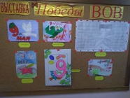 В преддверии 77-летия Дня Победы в нашей организации была организована тематическая выставка рисунков и поделок под названием «Победа ВОВ». Все участники выставки проявили свой творческий потенциал. Ребята совместно с родителями изобразили картины сражений, Вечный огонь, который украшает наш город, белых голубей, салют и т.д. Каждая работа выполнена с большой любовью, несёт в себе тепло и доброту.