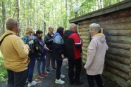 На фотографии: Экскурсовод Экомузея рассказывает об охотничьей избе народа Ханты, которая строилось с той целью, чтобы во время сезона охоты использовать ее как сторожку для отдыха и место где можно было выпотрошить тушу.