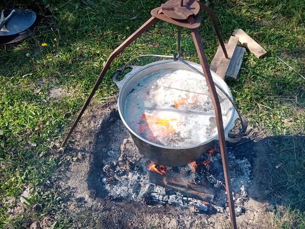 На этих мы видим процесс приготовления ухи и жаренного картофеля. Женщины накрывают на стол.