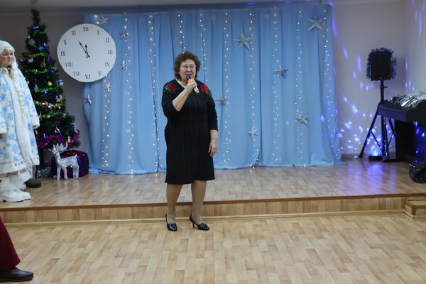 На сцену вышла Снегурочка и исполнила песню «Новый год».