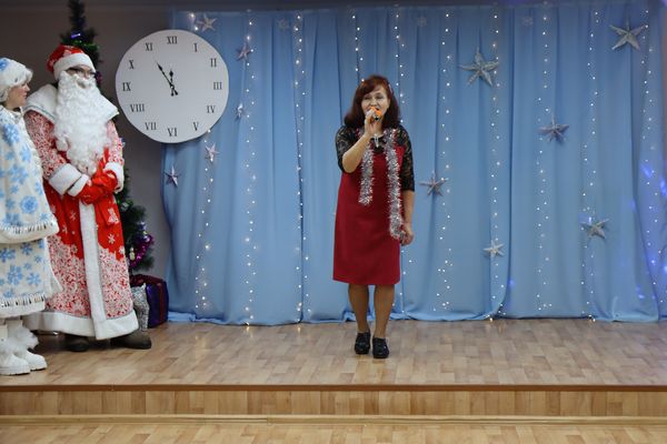 На сцену вышла Снегурочка и исполнила песню «Новый год».